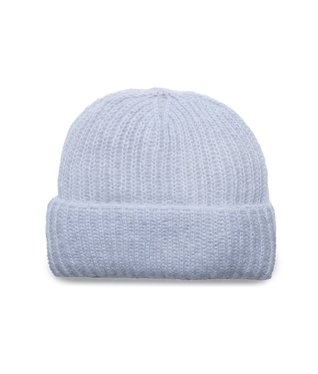 Our hat in a mohair mix with a wide fold, in a soft shade of ice blue.