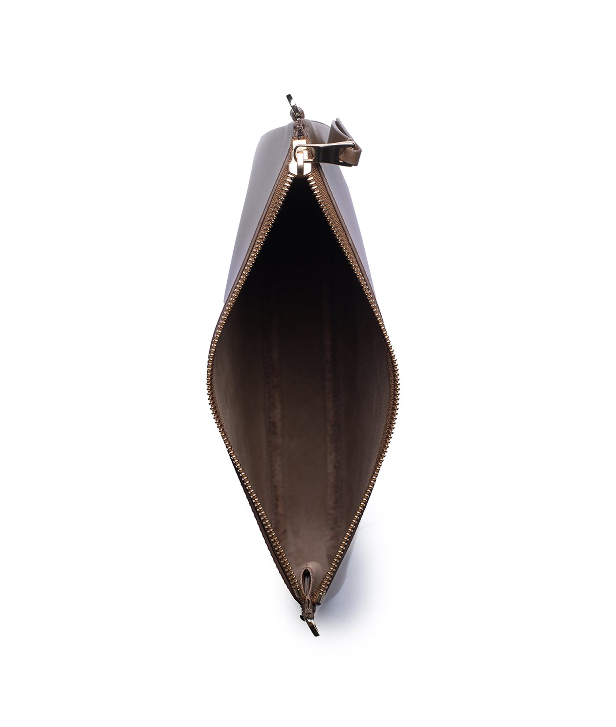 The pouch is unlined and finished with details in yellow metal and a zip closure.