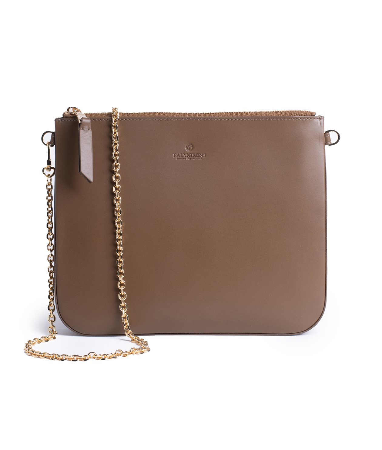 Our Catch All bag, sewn in a supple, warm brown calf leather.