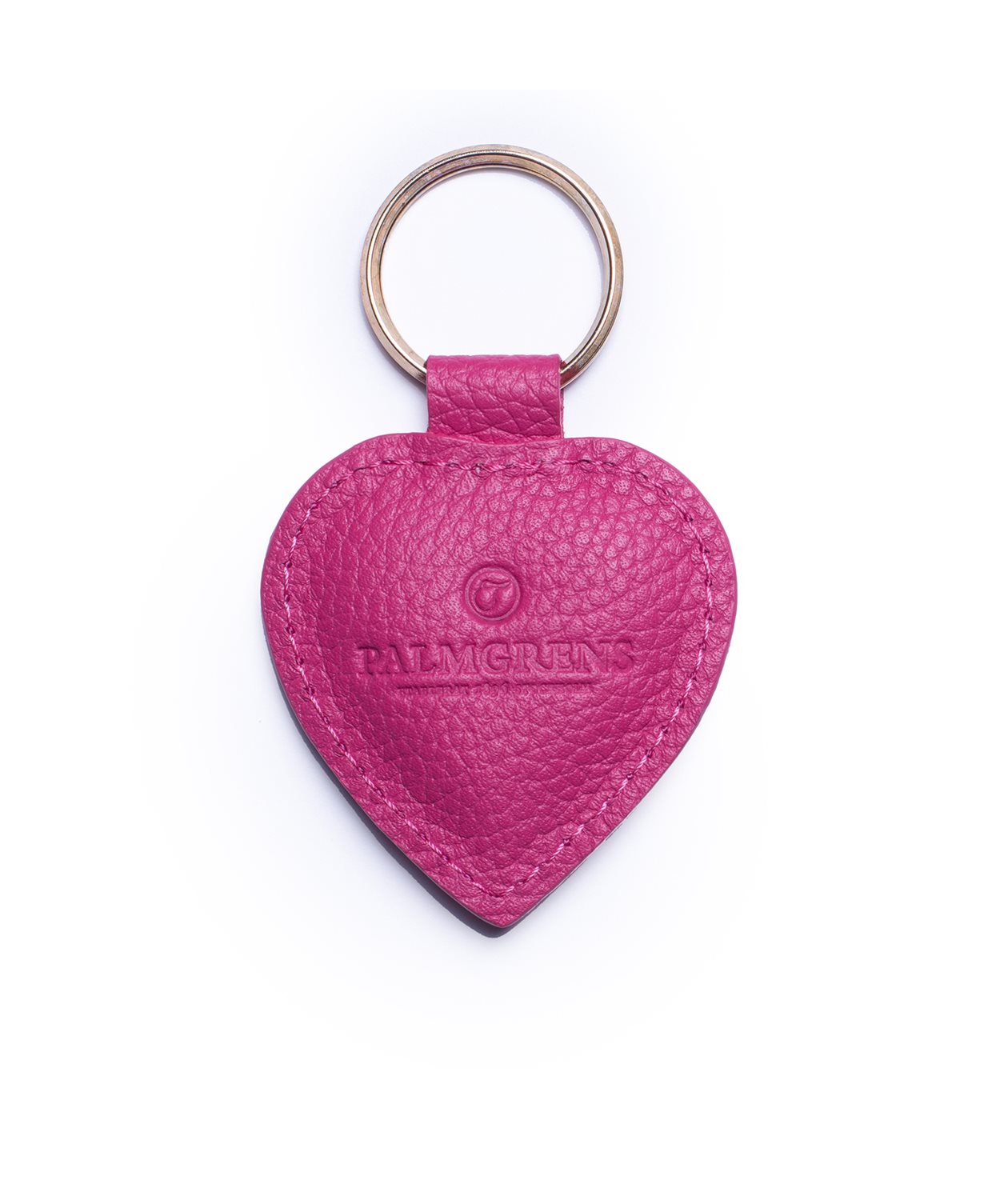 Our classic keyring with padded heart in grained calf leather, finished with keyring in yellow metal.