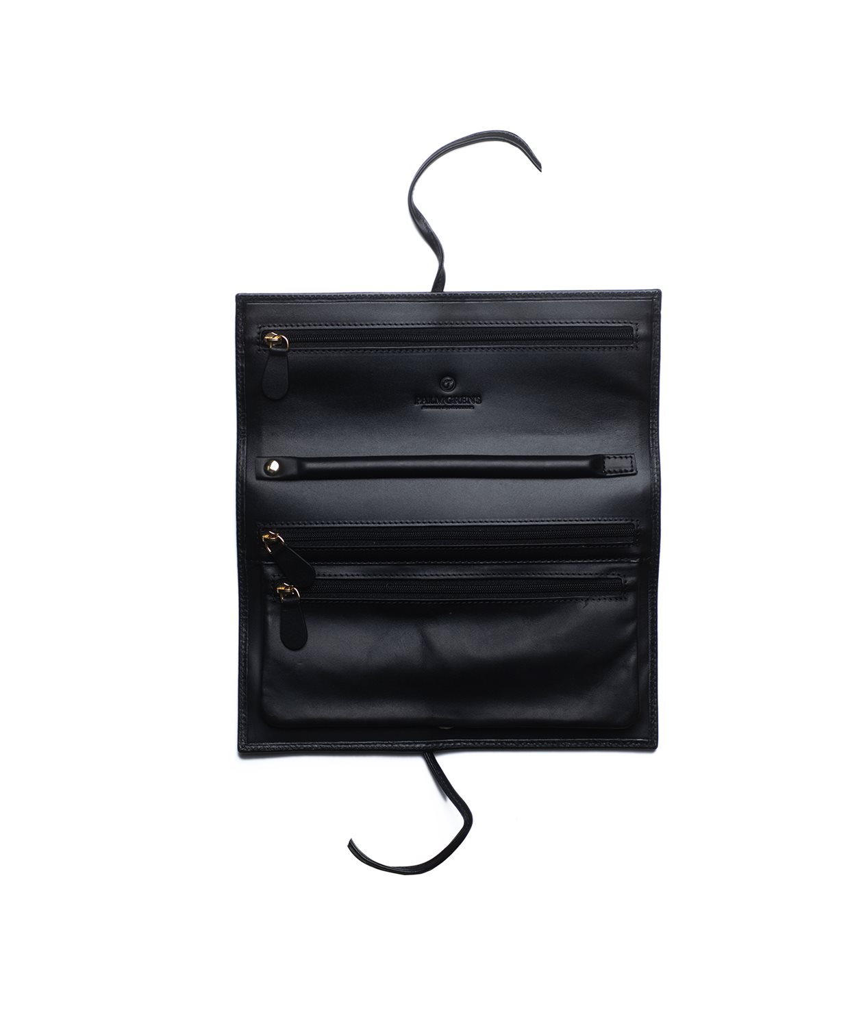 The jewellery roll offers three zipped pockets for jewellery, a wall for earrings and a strap for rings.