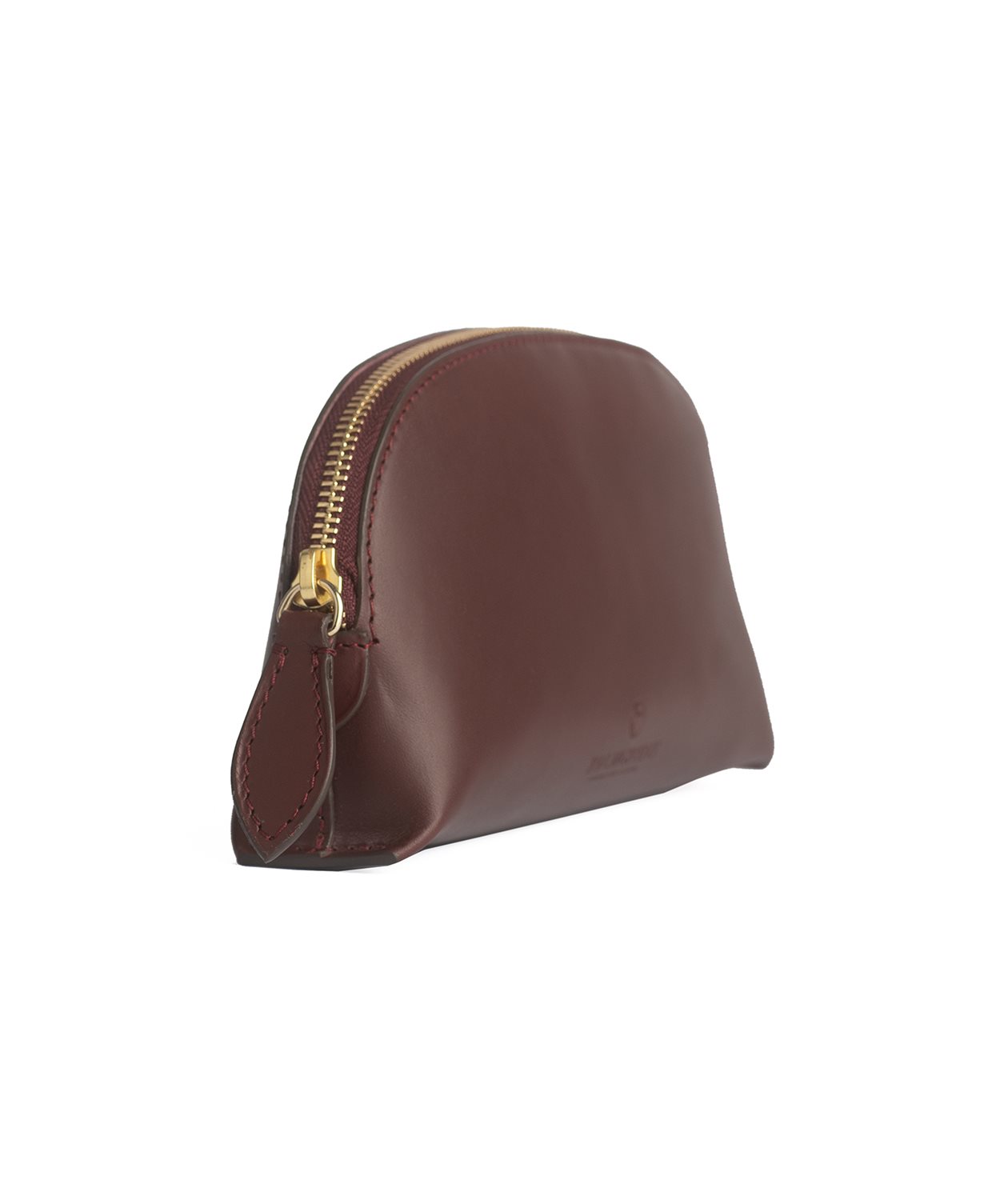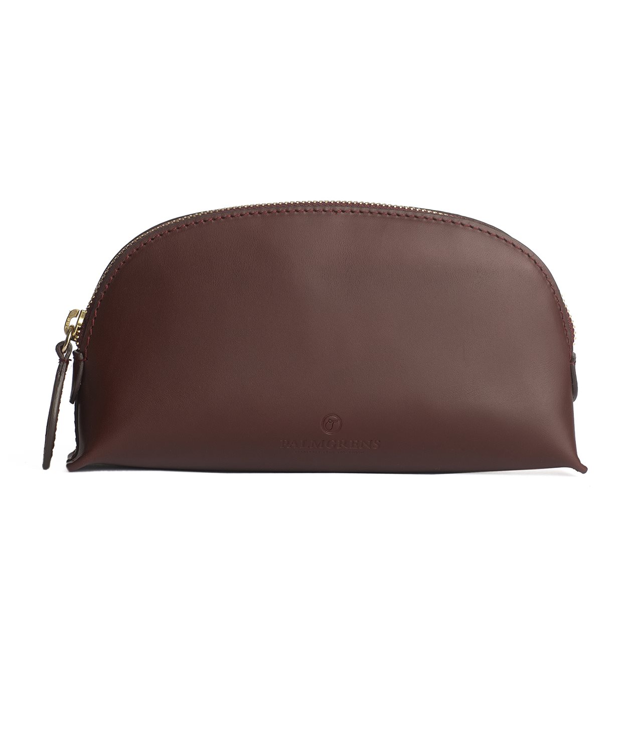 Vår sminknecessär i vegetabiliskt garvat kalvläder med en vacker rundad halvmåneform.