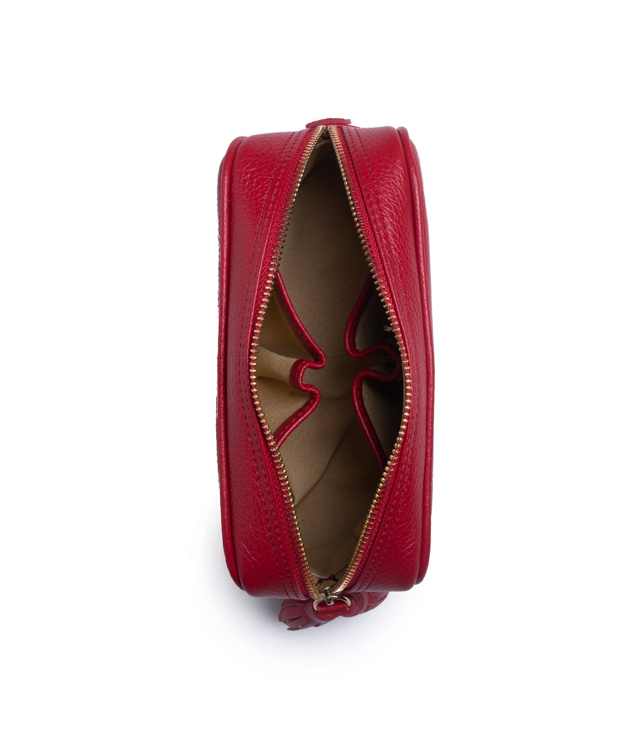 En nätt necessär, sydd i grängat kalvläder i en rundad rektangulär form med piping.
