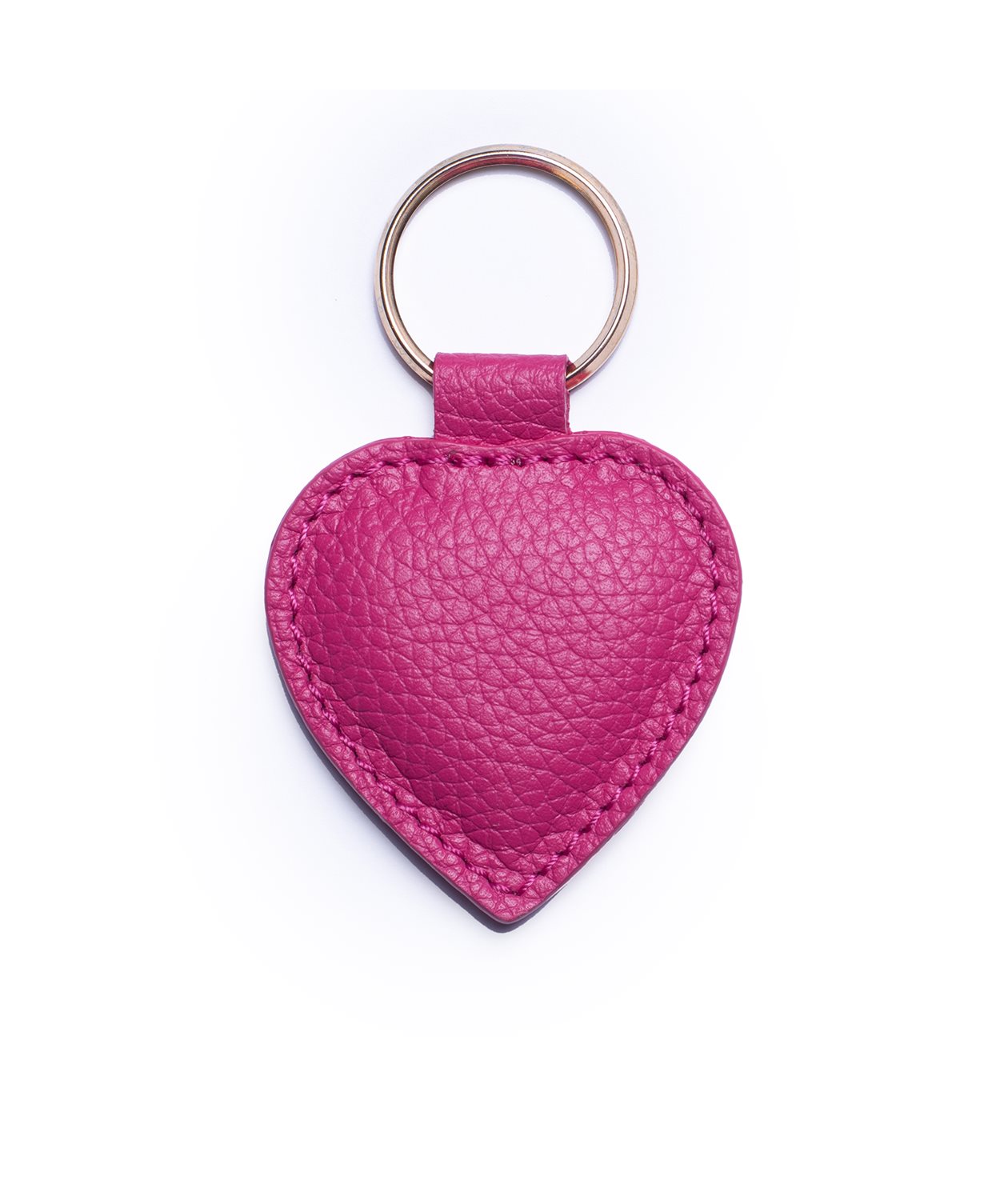 Vårt klassiska nyckelring med ett vadderat hjärta i grängat kalvläder, avslutad med nyckelring i gul metall.