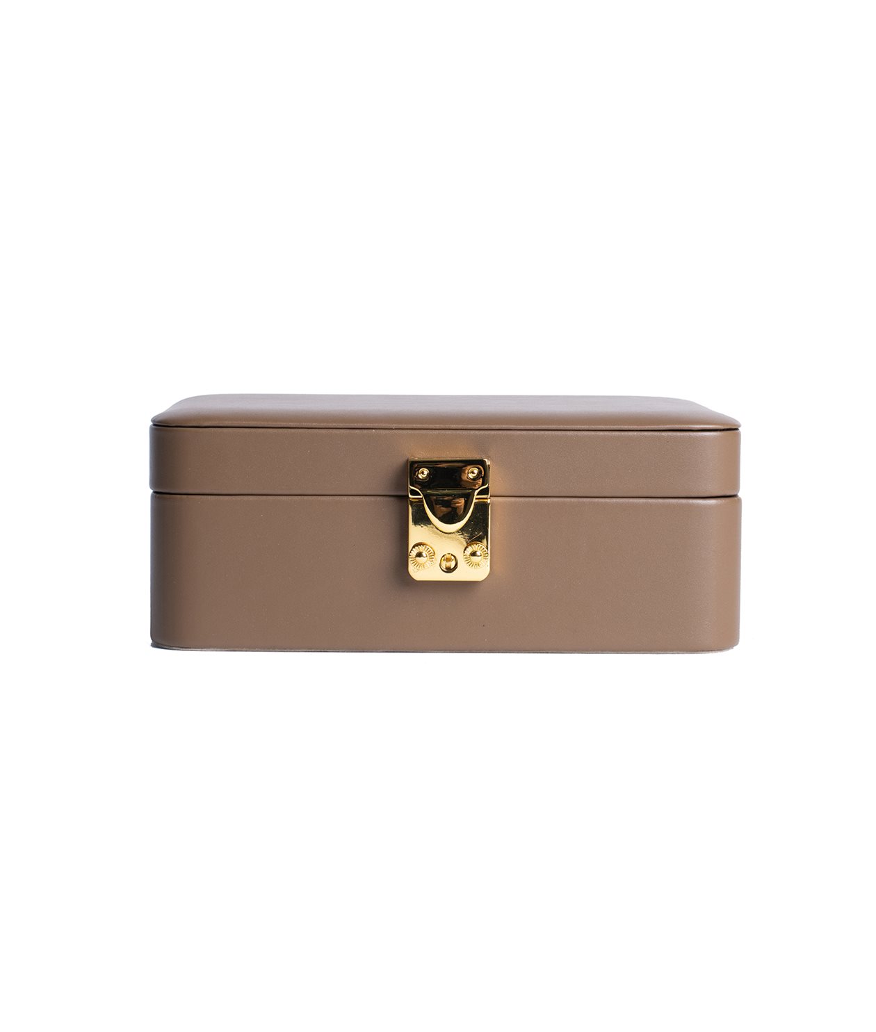 Vårt smyckeskrin med rundade hörn, klätt i ett vegetabiliskt garvat kalvläder.