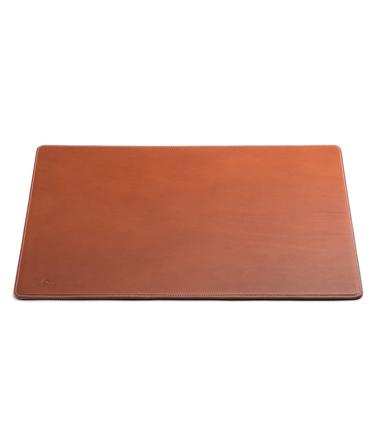 Vårt mindre, dubbelsidiga skrivunderlägg, sytt i vegetabiliskt garvat kalvläder med mjukt inramande sömmar. En mjuk yta för armarna att vila på, penna och papper att glida över och ett pålitligt skyddande lager mellan allt som det kreativa arbetet kräver och skrivbordsytan.