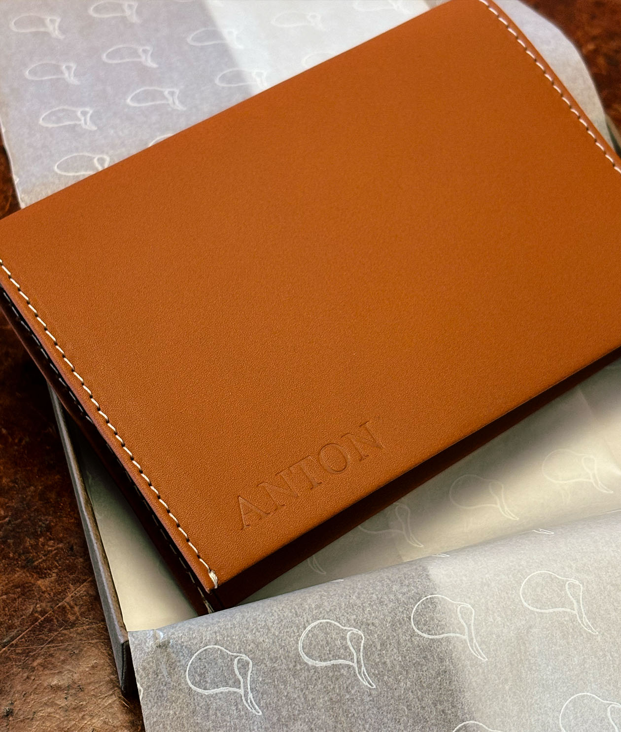 Vi är glada att erbjuda prägling på flera av våra produkter. Detta görs med värme, tryck och nogrann placering. Initialer, ett namn, datum eller en plats - valet är ditt och gör passfodralet, bokomslaget eller nyckelringen till din alldeles egna.